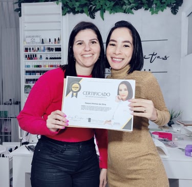 Ao longo desses anos, ensinei milhares de nail designers a transformar o talento em renda usando um método prático, direto e focado no que realmente funciona em mesa.